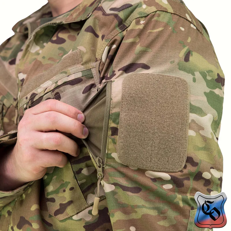 На рукавах имеются удобные карманы, застегивающиеся на молнию и имеющие велкро-панель для размещения шевронов и знаков отличия.