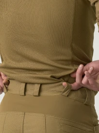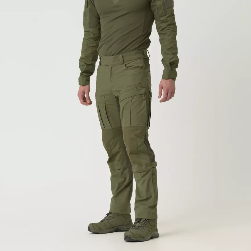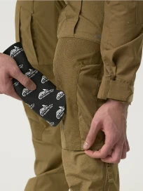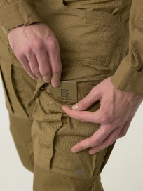 Усиление в области колен. Повышенная износостойкость при частом вставании на колени и передвижении по сложному рельефу. Для дополнительной защиты коленей брюки также оснащены отделениями для вставок с наколенниками.