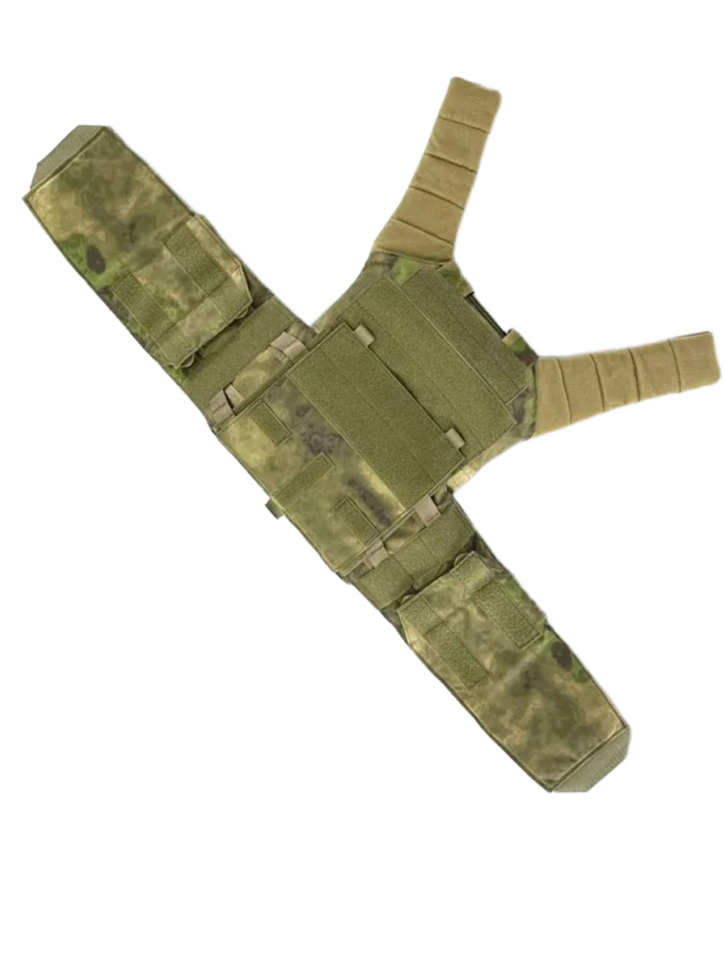 • Камербанды обшиты Molle ячейками для размещения боекомплекта, аптечки и прочего снаряжения. Во внутренние карманы устанавливаются противоосколочные пакеты.