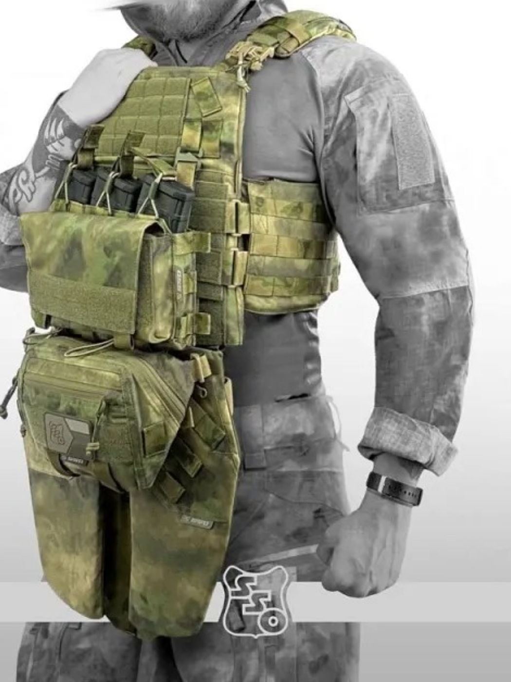 • На липучку под клапаном передней панели чехла можно закрепить утилитарную сумку ГРОМ PRO.