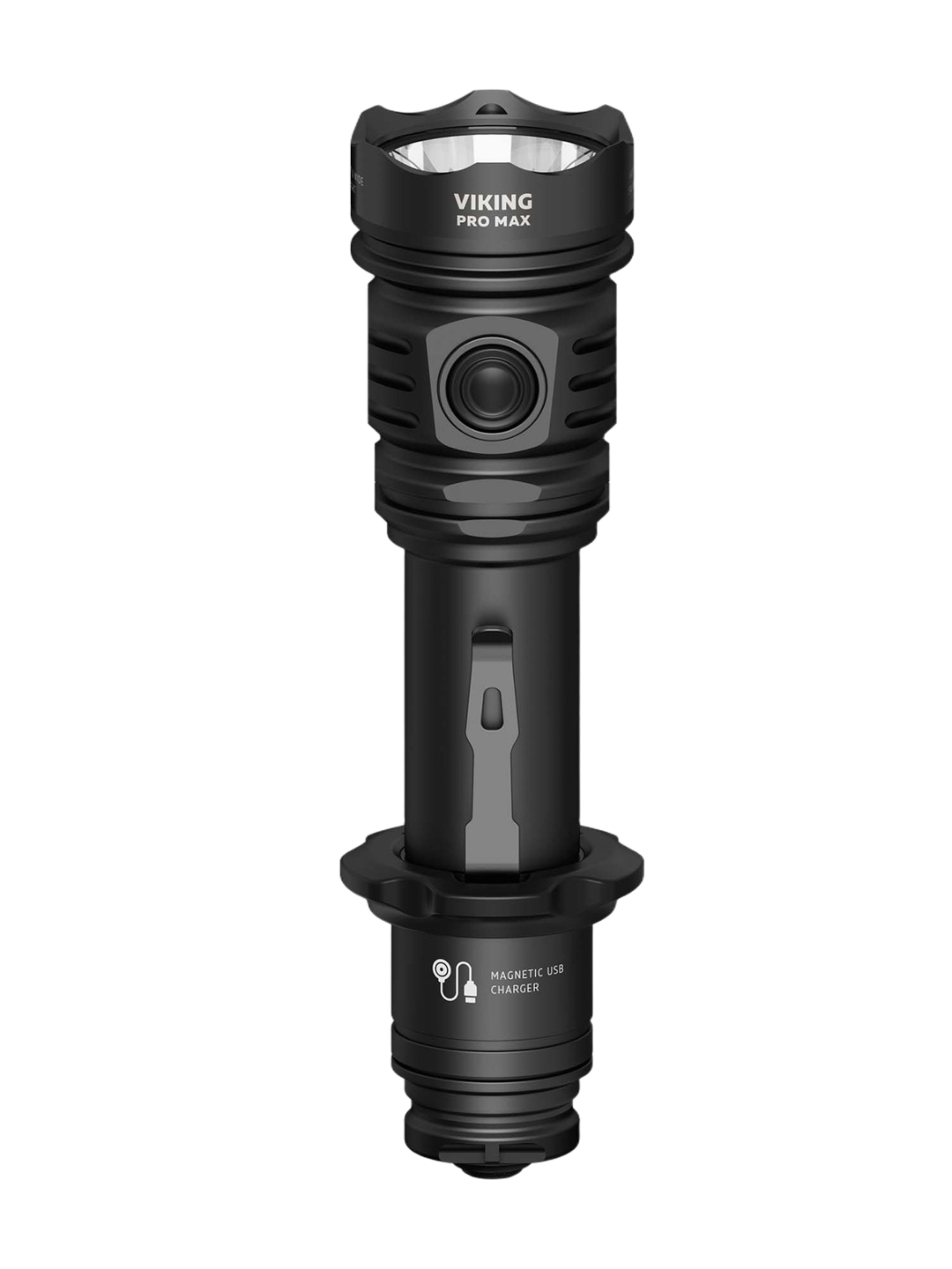 Viking Pro Max совместим со специально разработанной магнитной выносной кнопкой и оригинальными креплениями для подствольного применения. Модель работает не только на комплектном элементе питания, но и на любом стандартном аккумуляторе 21700 Li-Ion, а также, благодаря адаптеру, на аккумуляторе 18650 Li-Ion или на двух литиевых батарейках CR123A. Вариативность элементов питания позволяет значительно повысить автономность.
