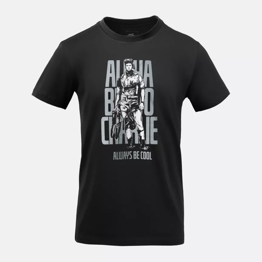 На этой футболке изображен водолаз-спецназовец, спасательном жилете и с ластами в руках. За ним расположены буквы A, B, C, написанные как Alpha, Bravo, Charlie – фонетический алфавит ИКАО, используемый в военной и авиационной связи на протяжении десятилетий. Это тонкая дань уважения наследию, профессионализму и дисциплине элитных подразделений.