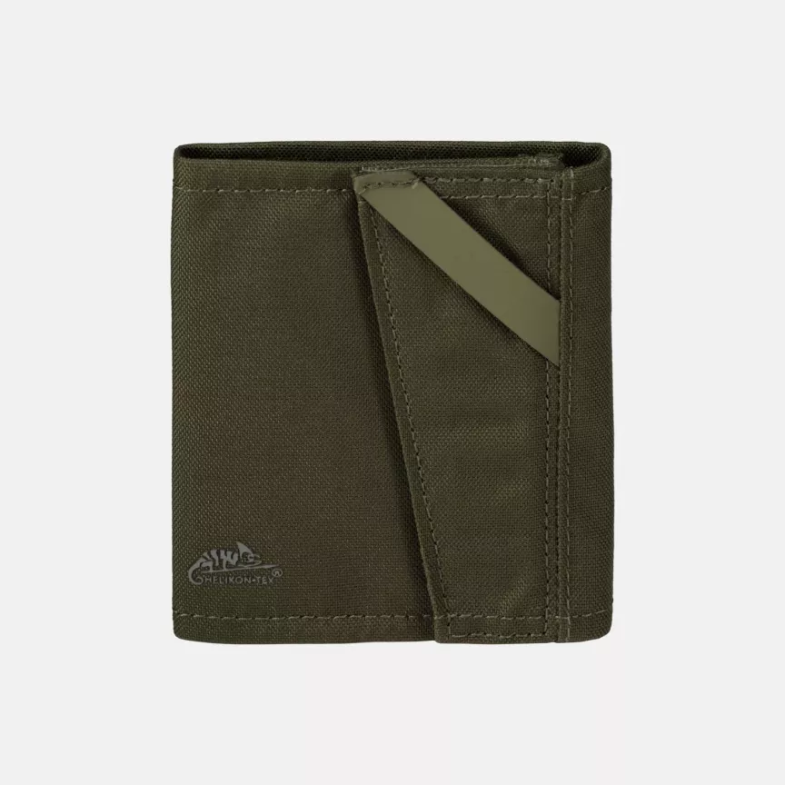 Простой складной кошелек с клапаном, соединяющим две половинки застежкой-липучкой. Хорошо организованное внутреннее пространство: отделения для карт с одной стороны и прозрачное окошко для удостоверения личности с другой. Небольшой карман с клапаном вмещает монеты, жетон для покупок или электронный ключ. Кошелек имеет основное отделение для банкнот, а также карман с RFID-блокирующим слоем, предотвращающим несанкционированное бесконтактное сканирование карт. Плоский и очень удобный в использовании.