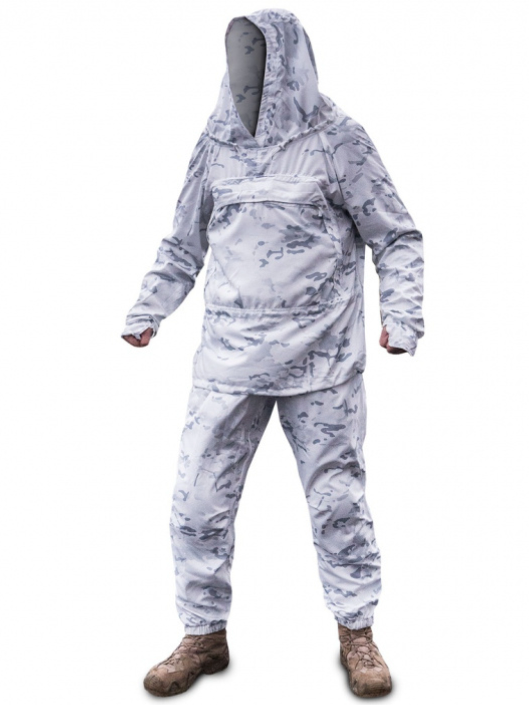 Маскировочный костюм Sturmer WCS (Winter Concealment Suit) имеет свободный покрой и надевается поверх одежды. Костюм легко подгоняется под особенности фигуры бойца, благодаря большому количеству регулировок.