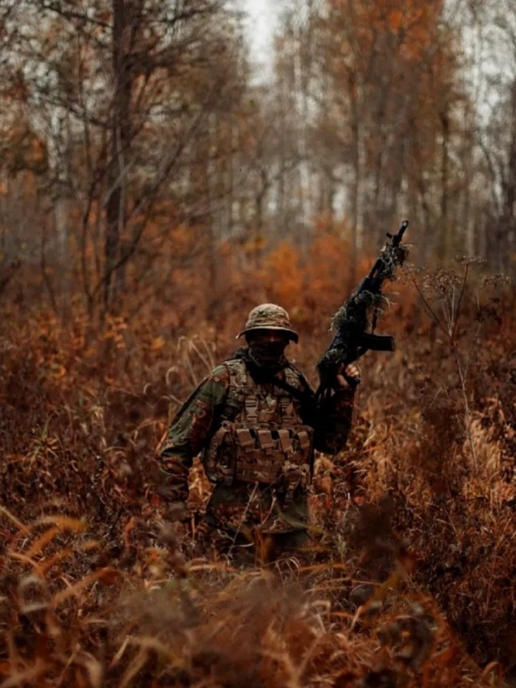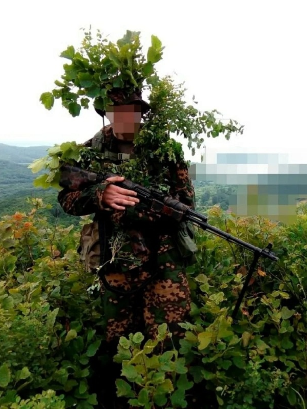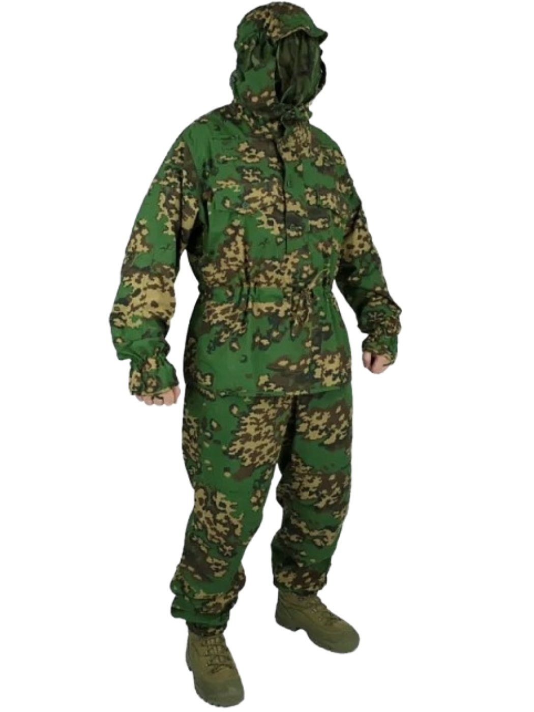 • Костюм для маскировки на фоне летних кустов и деревьев.
