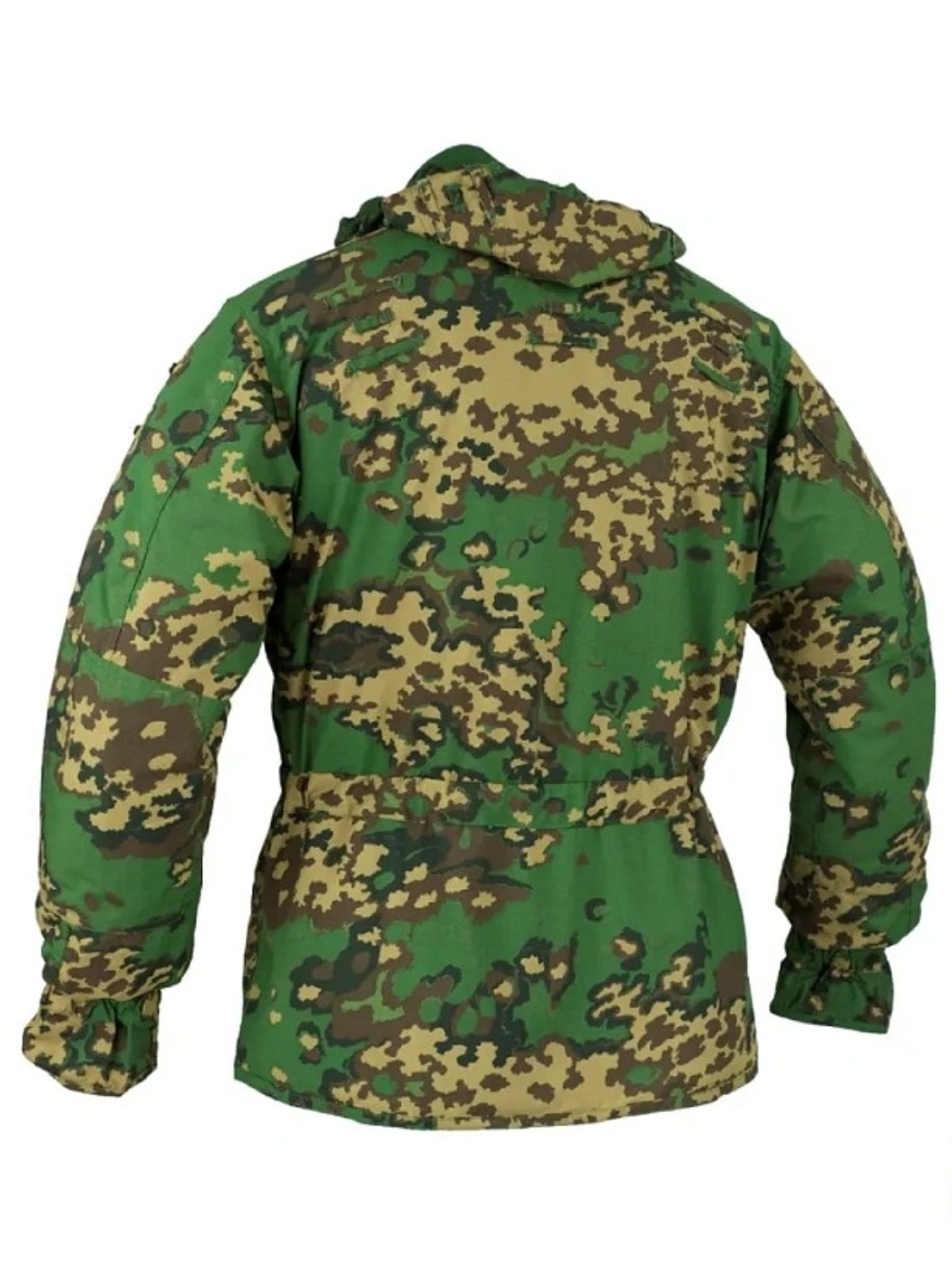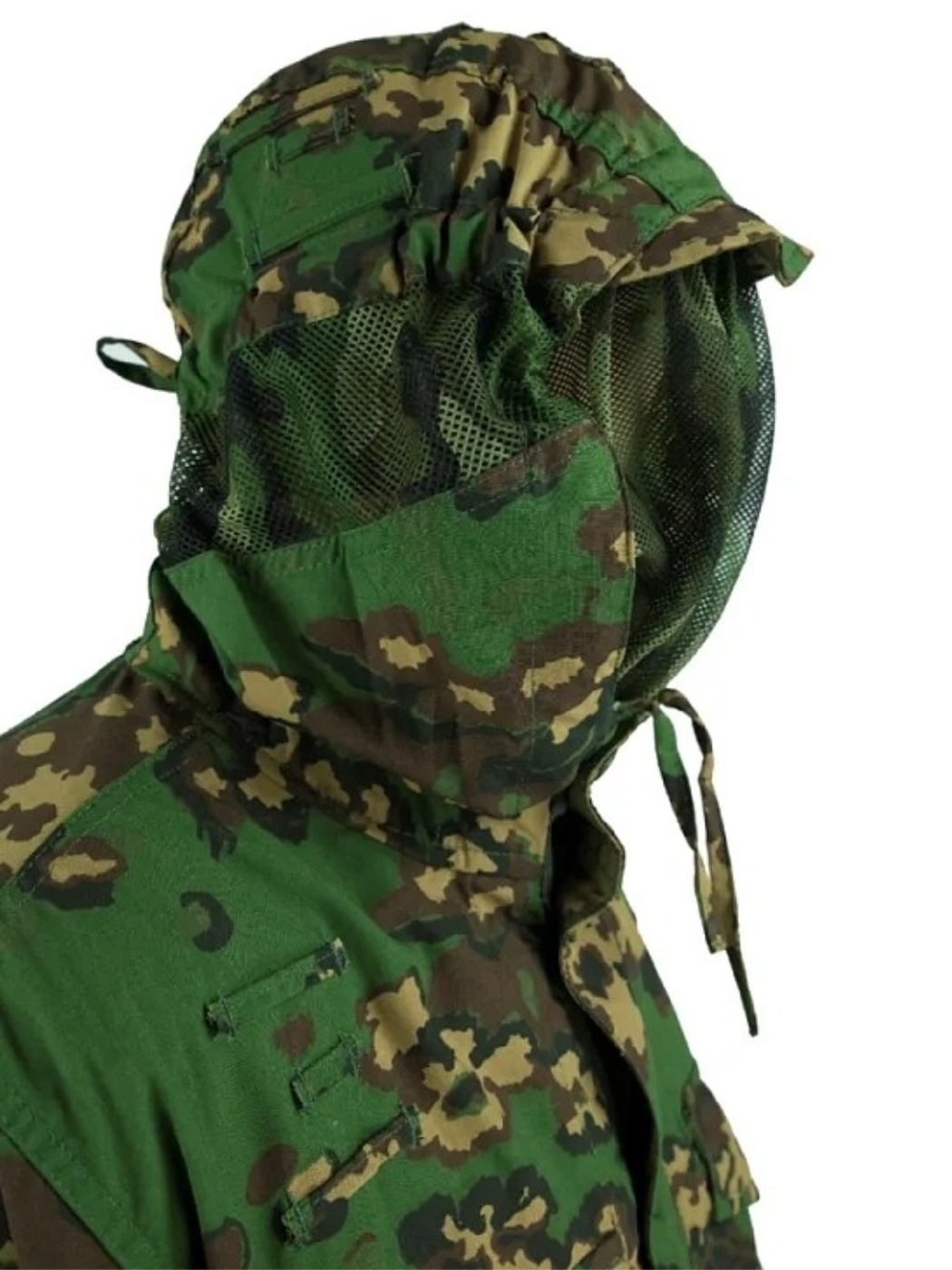 • Шлёвки крепления дополнительных элементов маскировки и клапаны прорезных карманов продублированы на изнаночной стороне. Пуговицы “канадского” типа на ножках из тесьмы, смещаются с одной стороны на другую через специальные отверстия.