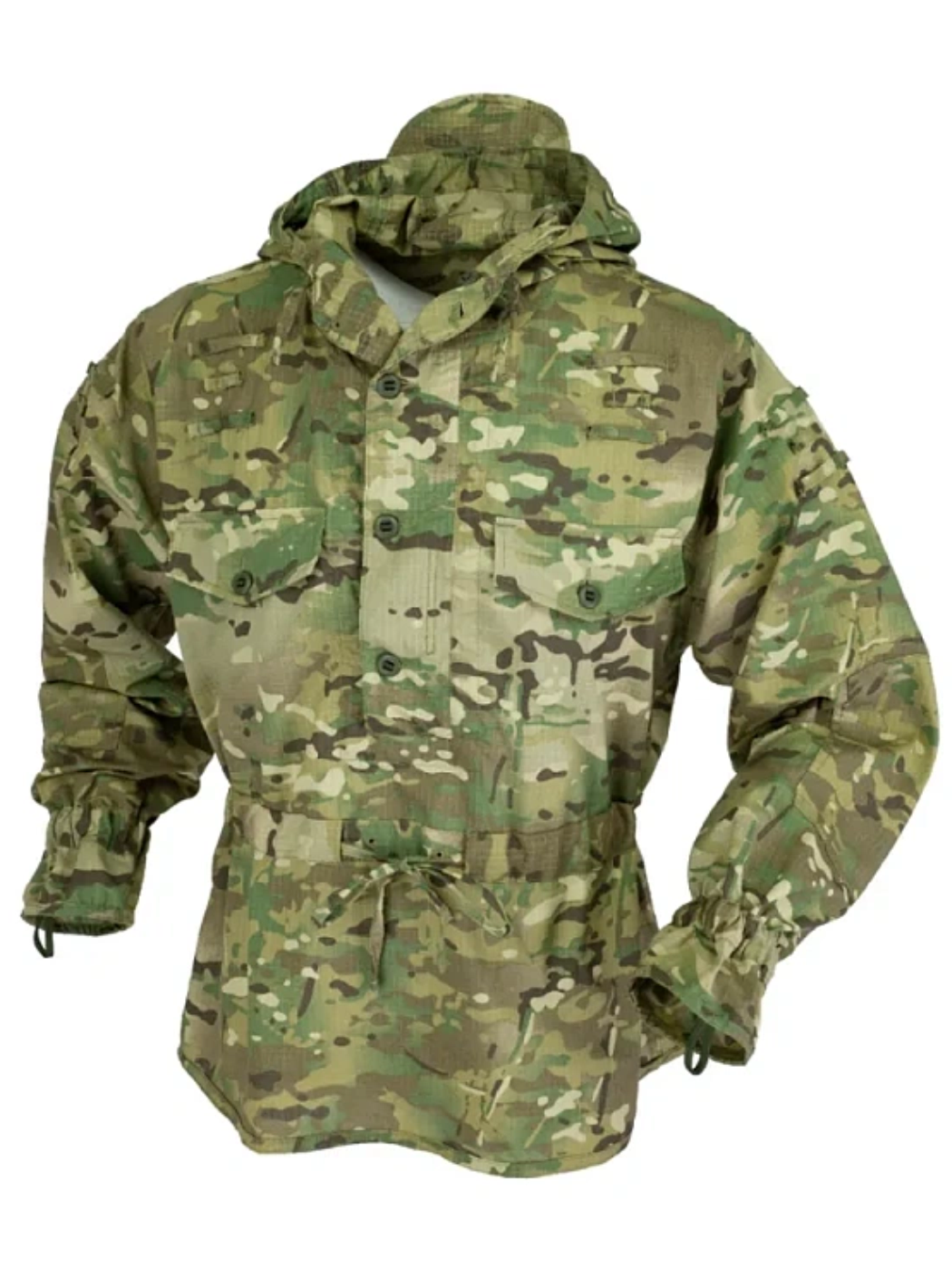 • Благодаря тому, что куртка-анорак стягивается в талии специальным пояском, обеспечивается комфортное ношение разгрузочной поясной системы (РПС).