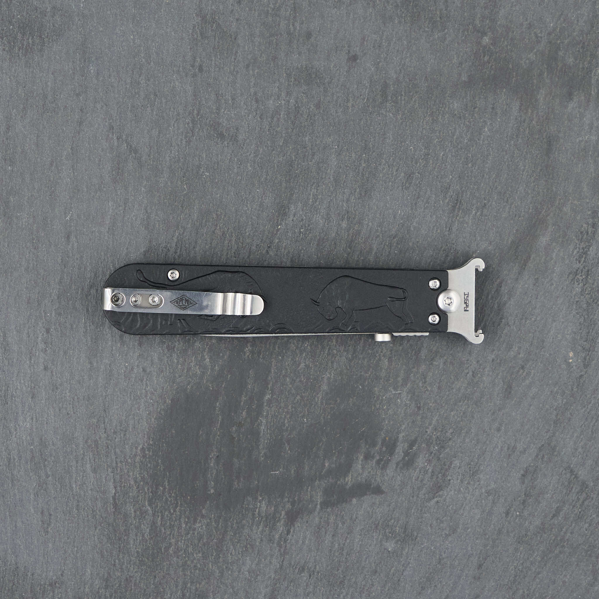 Чтобы нож был удобен для повседневного ношения, в конструкцию добавили линейный замок (Liner Lock). Клинок надежно фиксируется и безопасен в работе. Также предусмотрена клипса глубокой посадки — нож комфортно носить на кармане.