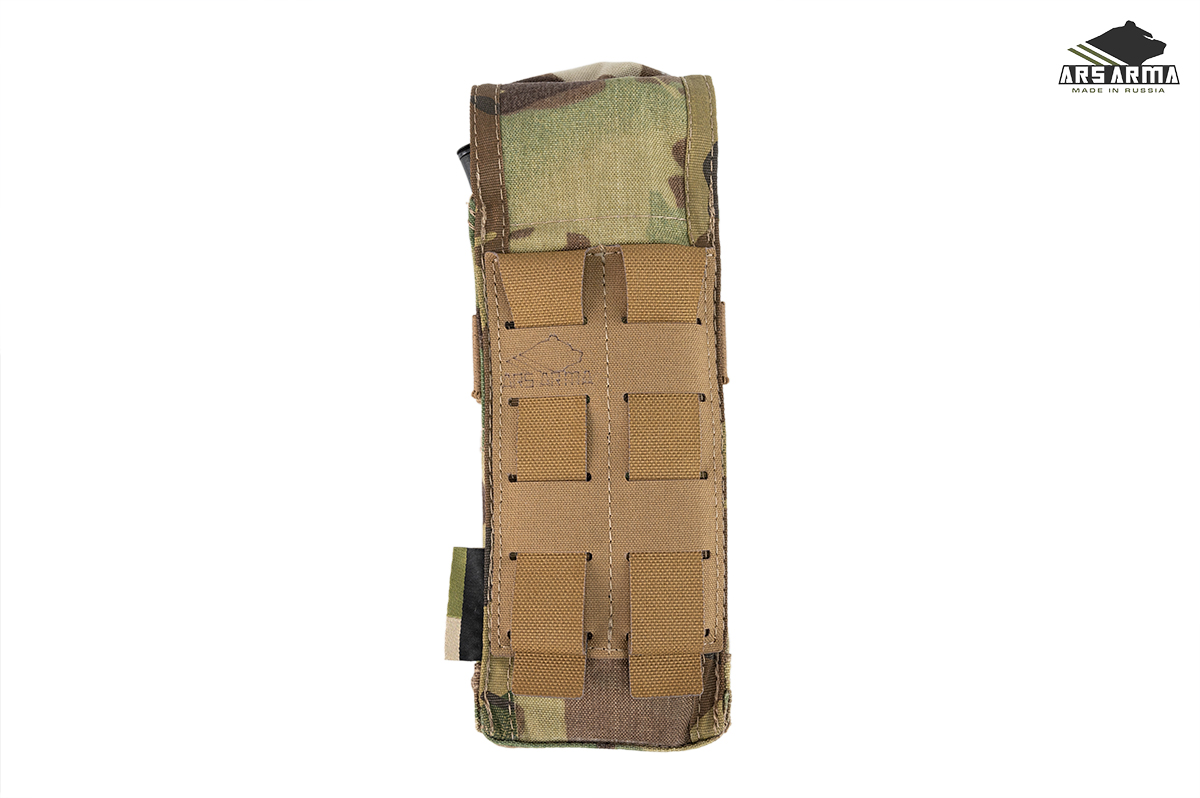 Подсумок для размещения АК магазинов. Конструкция магазина обеспечивает удобство извлечения или возврата подсумка в магазин даже одной рукой. Подсумок оснащен жесткой внешней стенкой и внутренней перегородкой благодаря чему подсумок можно использовать для переноски одного магазина, если нужно снизить профиль бронежилета без потери удобства. Клапан имеет утолщение для удобства открывания подсумка рукой в перчатках. Осознавая высокую требовательность нашего рынка к износостойкому снаряжения мы усилили уязвимые места конструкции.
