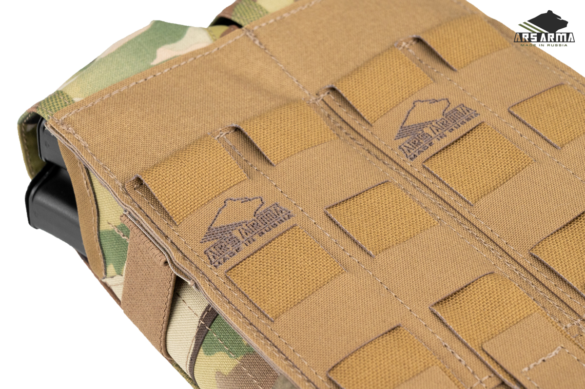 Подсумок для размещения АК магазинов. Конструкция магазина обеспечивает удобство извлечения или возврата подсумка в магазин даже одной рукой. Подсумок оснащен жесткой внешней стенкой и внутренней перегородкой благодаря чему подсумок можно использовать для переноски одного магазина, если нужно снизить профиль бронежилета без потери удобства. Клапан имеет утолщение для удобства открывания подсумка рукой в перчатках.
