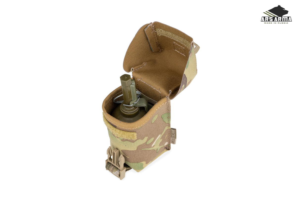 Подсумок для переноски гранат, подходит для любых видов боевых гранат. Крышка-клапан защищают гранату от намокания и подсумок от засорения. Подсумок занимает одну ячейку MOLLE что позволяет разместить на разгрузочной платформе больше снаряжения.