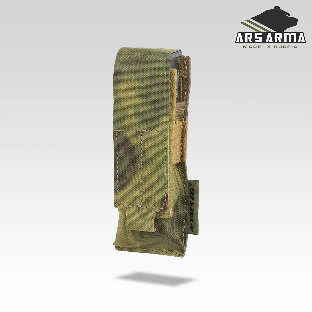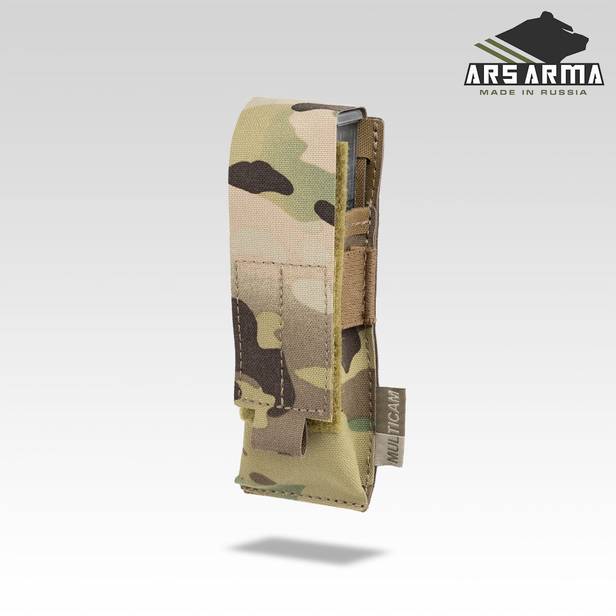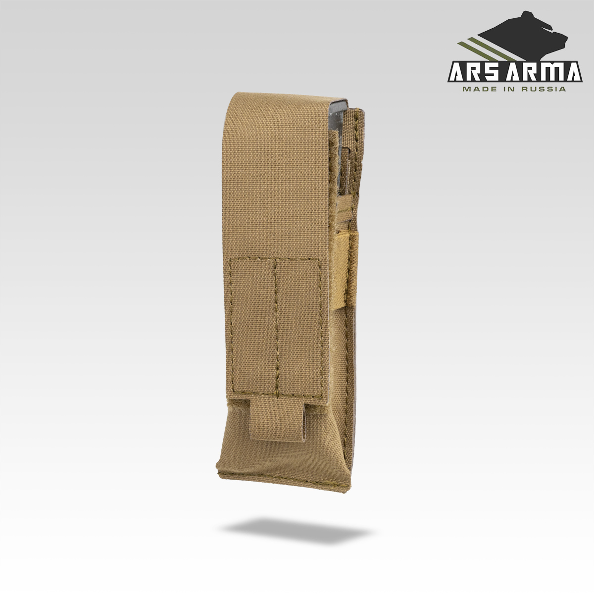 Подсумок предназначен для переноски пистолетных магазинов, мультитула, фонаря. Фиксация содержимого осуществляется за счет регулируемого по высоте клапана с велкро, для лучшего удержания присутствует резинка, которая позволяет использовать подсумок с открытым клапаном для быстрого доступа к пистолетным магазинам.