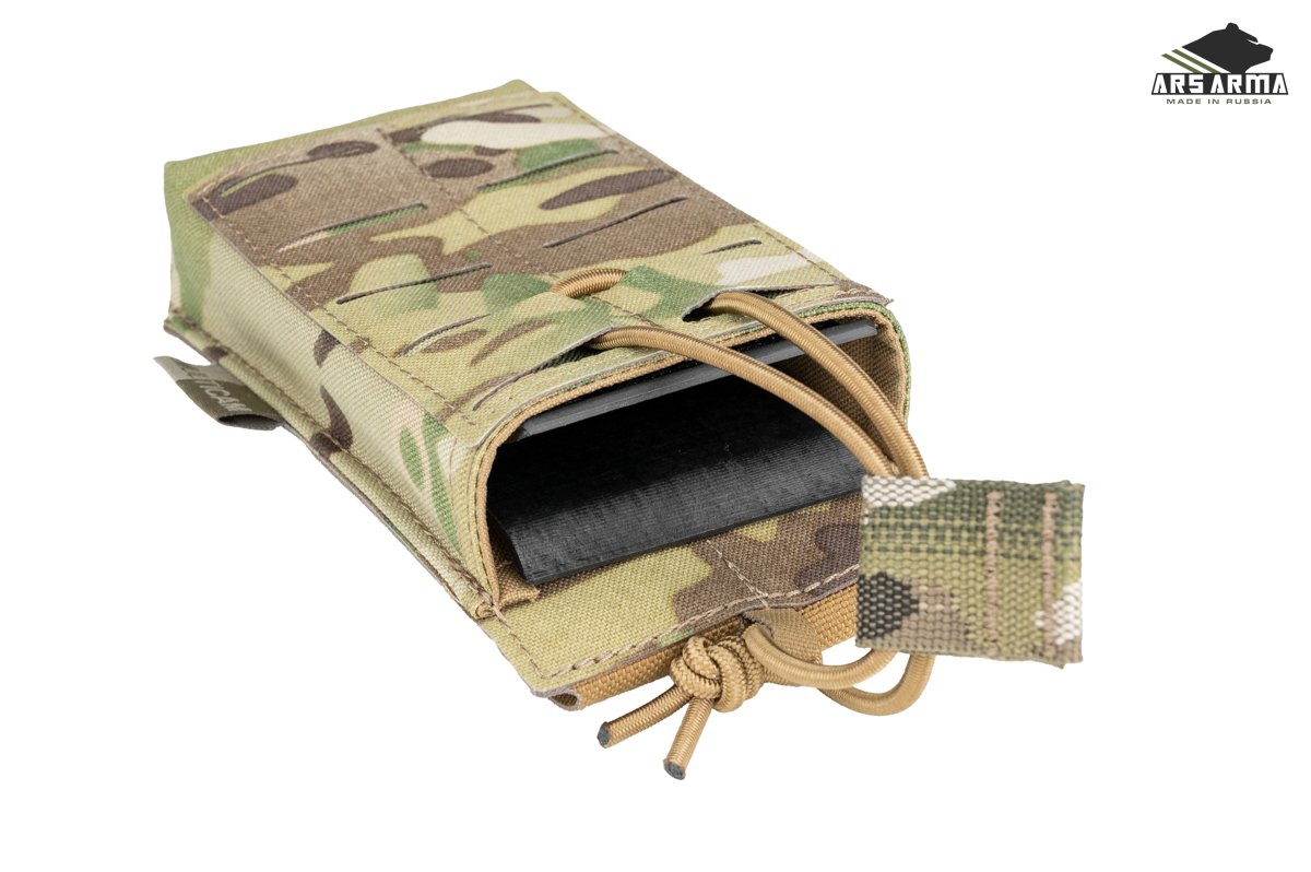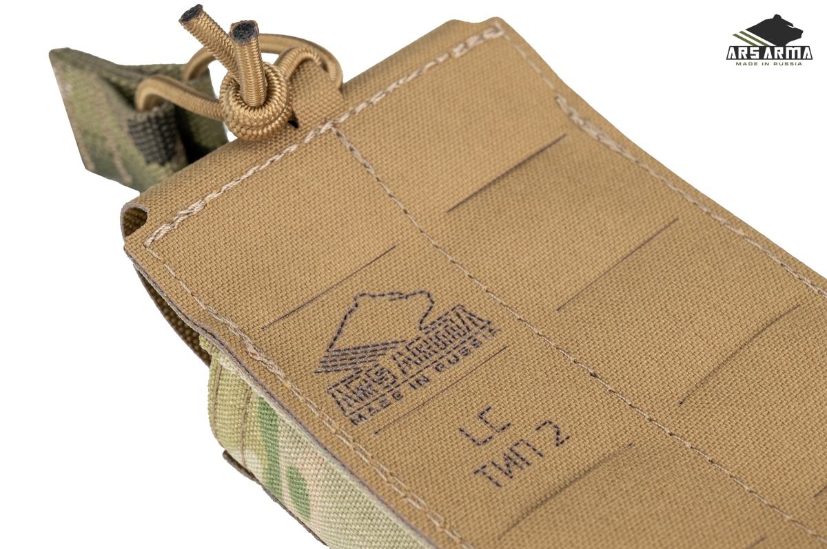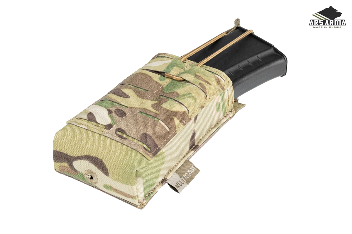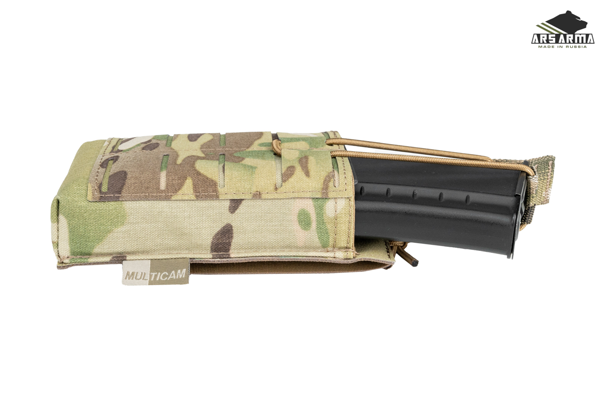 Каркасный подсумок штурмовой открытого типа для быстрого извлечения магазина, при необходимости магазин удерживается кордом с пуллером. На внешней стороне расположен интерфейс MOLLE для возможности установить дополнительные подсумки или другую экипировку. Компактный, легкий, универсальный подсумок для АК\М4 магазинов, подойдет там, где нужно обеспечить быстрое извлечение магазина. Главная отличительная черта этой версии подсумка в возможности быстрого возврата магазина в подсумок благодаря горловине, которая держит форму.