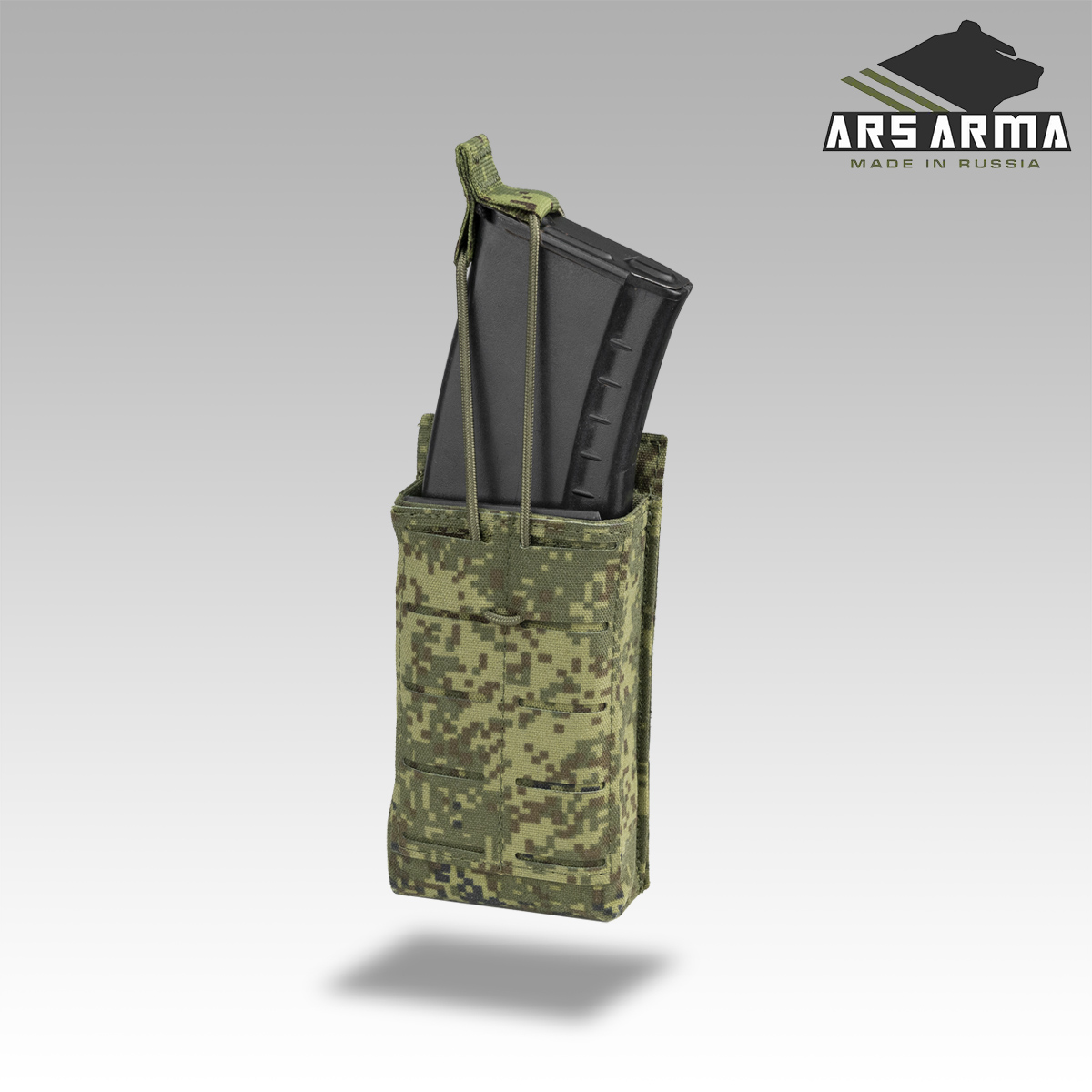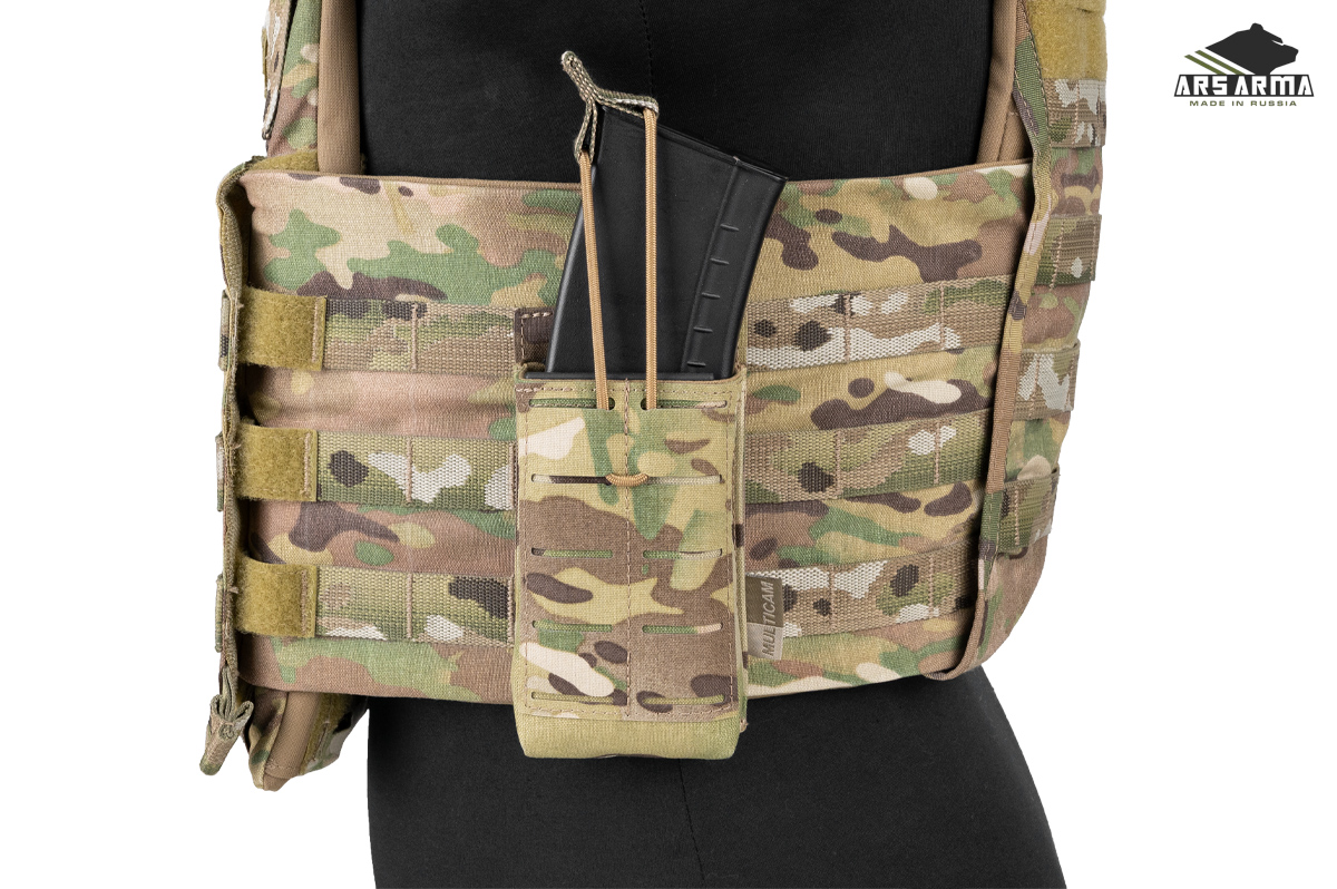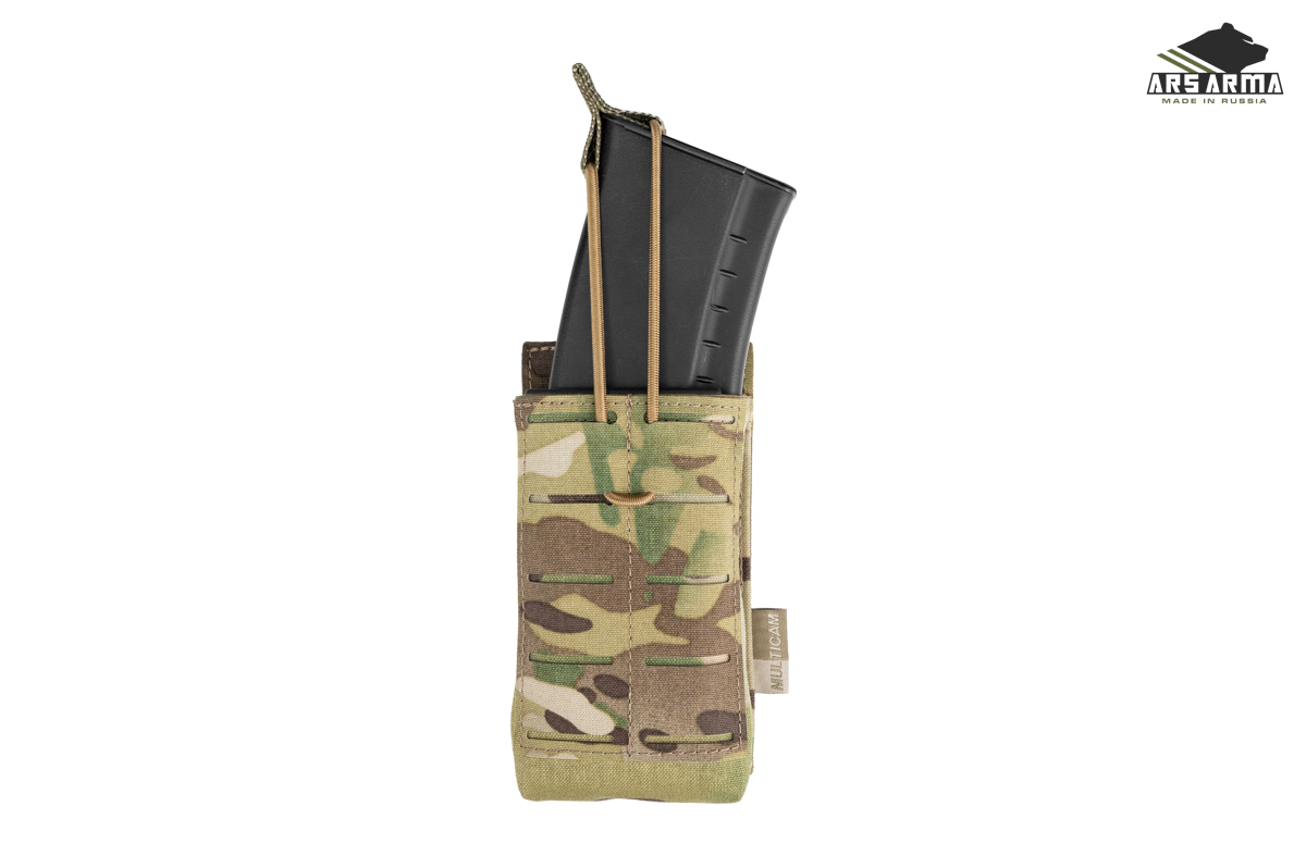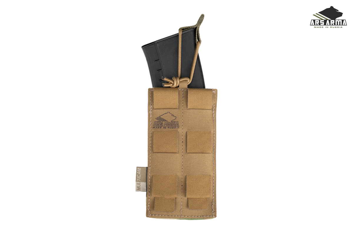 Каркасный подсумок штурмовой открытого типа для быстрого извлечения магазина, при необходимости магазин удерживается кордом с пуллером. На внешней стороне расположен интерфейс MOLLE для возможности установить дополнительные подсумки или другую экипировку. Компактный, легкий, универсальный подсумок для АК\М4 магазинов, подойдет там, где нужно обеспечить быстрое извлечение магазина. Главная отличительная черта этой версии подсумка в возможности быстрого возврата магазина в подсумок благодаря горловине, которая держит форму.