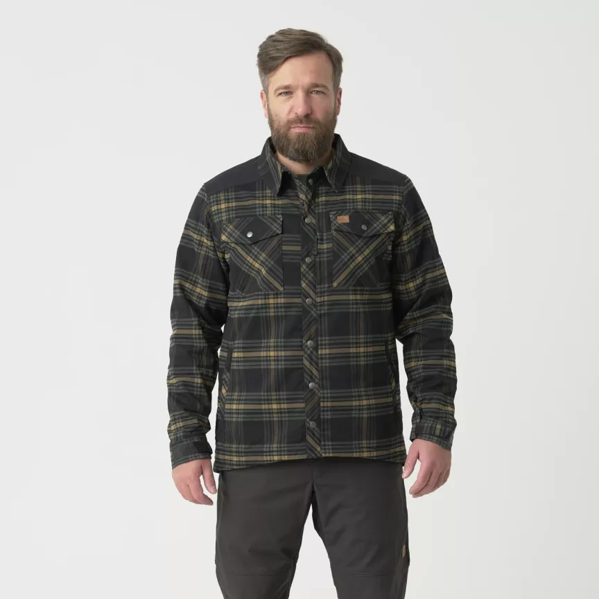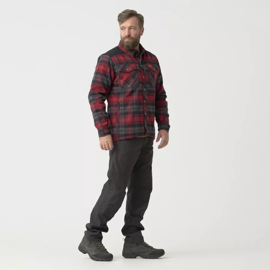 Классическая клетчатая рубашка с изюминкой. Она изготовлена из быстросохнущих синтетических материалов и имеет легкий наполнитель плотностью 60 г/м², что делает ее идеальной для ситуаций, когда зимняя куртка слишком объемна, а ветровка или анорак недостаточны. Рубашка имеет семь карманов. Внутри два просторных кармана для шапки и перчаток. Снаружи два нагрудных кармана, два боковых кармана и один плоский карман для мелочей. Усиленные плечи защищают рубашку от истирания и влаги. Застежка на кнопках удобна и подчеркивает вневременной вид рубашки.