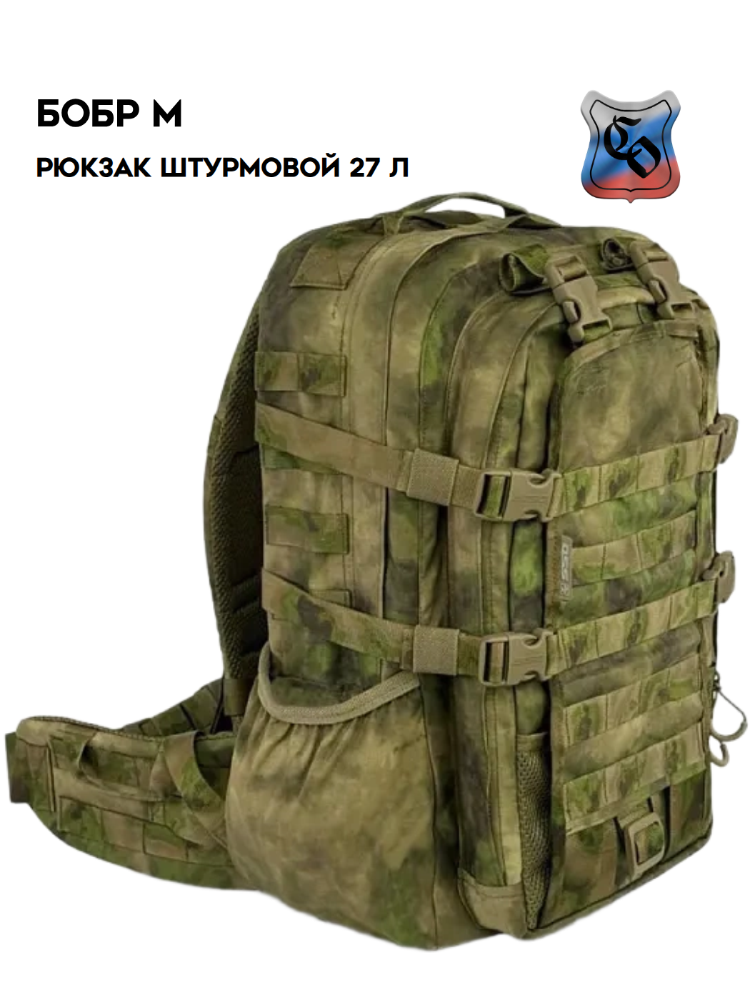 • Также по бокам нашиты по четыре ременные ленты по 2 ячейки Molle на каждой.