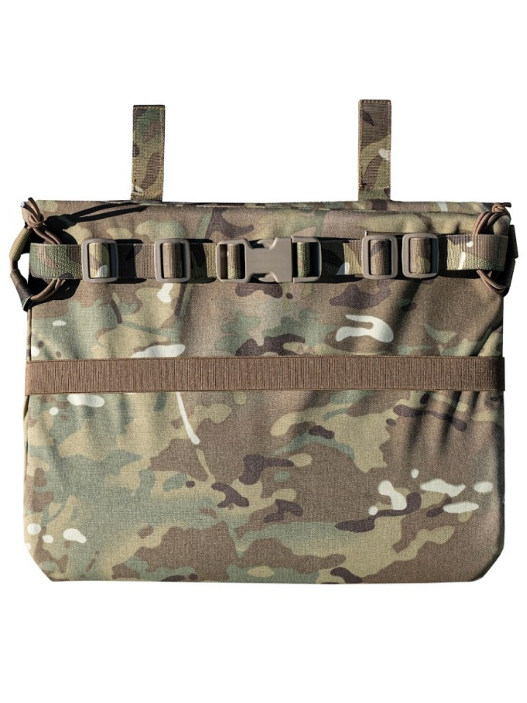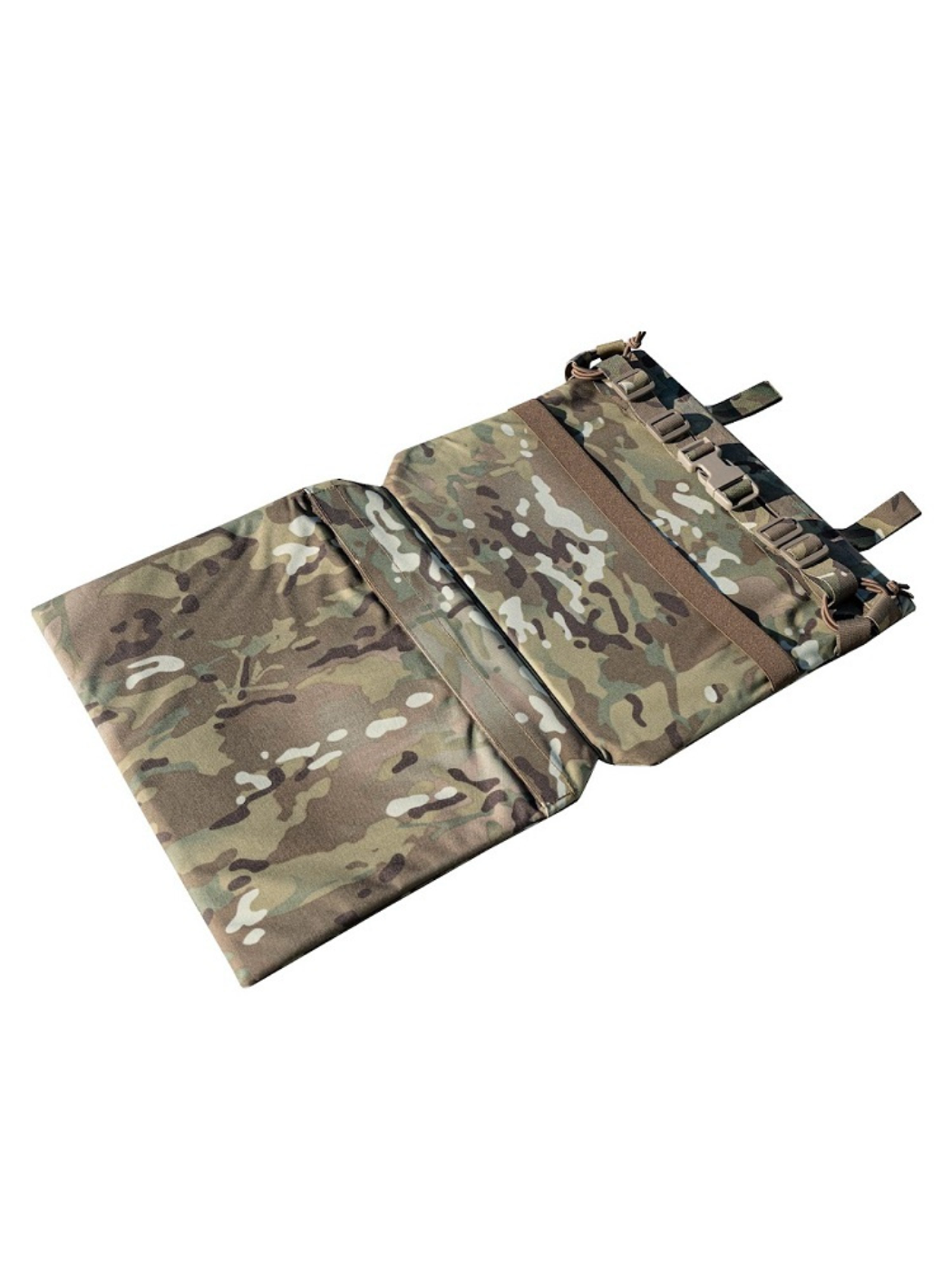 Двухсекционное сидение-пятиточечник Sturmer Folder предназначено для размещения одного или двух баллистических пакетов, которые защищают поясницу, таз и ноги от осколков. Сиденье можно закрепить тремя способами: на MOLLE-платформу бронежилета или пояса, а также как классическую сидушку с помощью поясной стропы. В этом случае его можно будет повернуть вперед и использовать как небольшой коврик для засады или подложить под спину для короткого отдыха. Базовая комплектация включает две вставки из изолона, которые обеспечивают комфорт и теплоизоляцию, а также один баллистический пакет класса защиты БР1 в верхней секции.