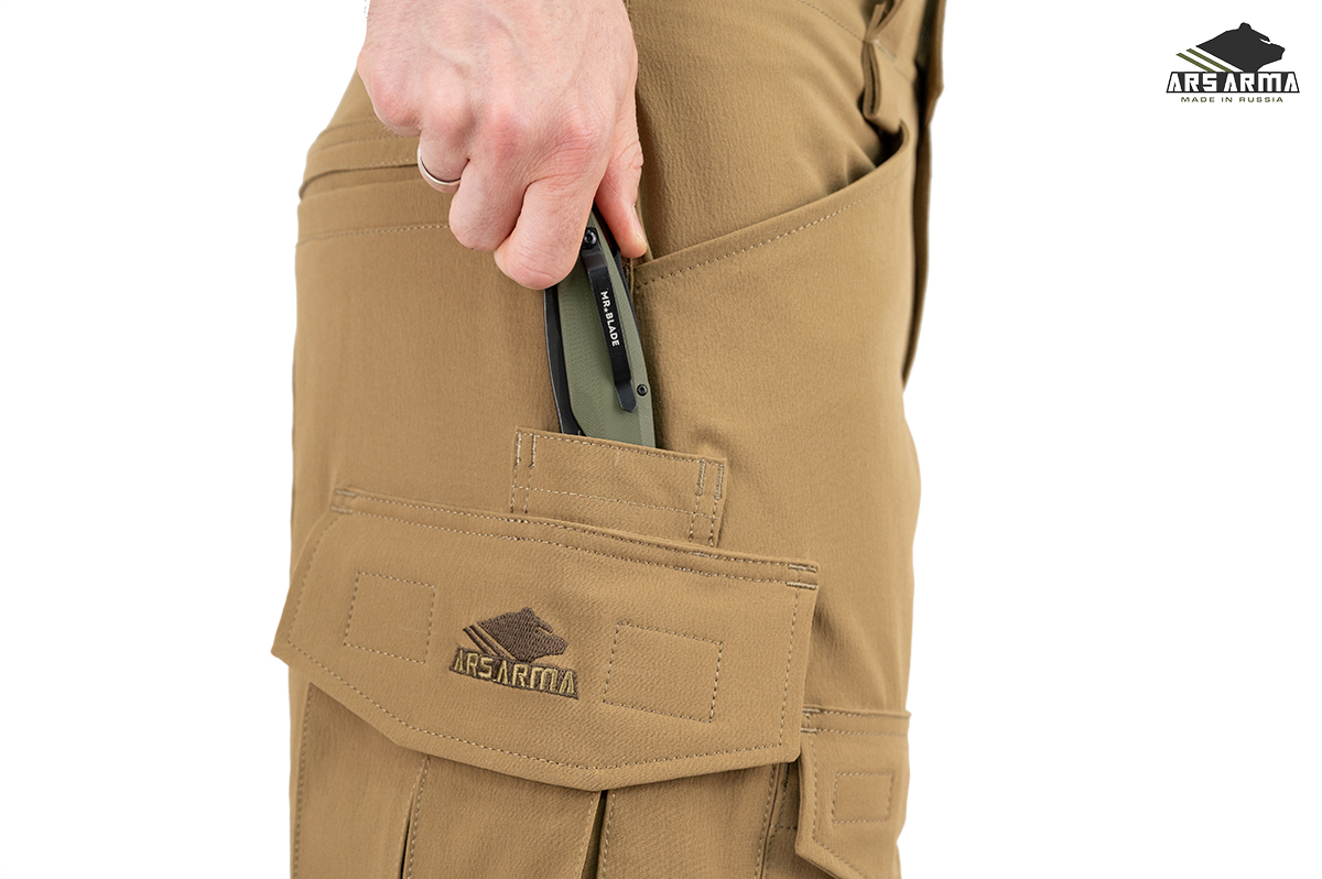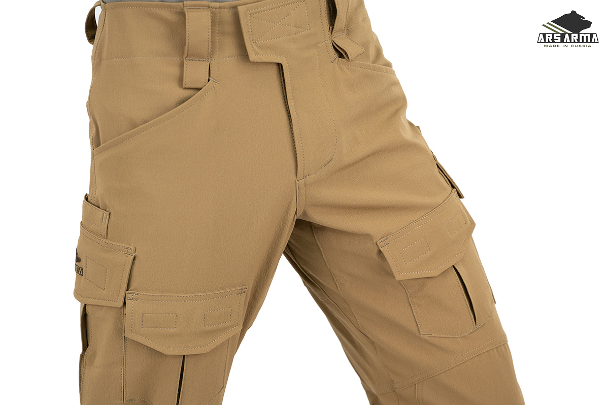 Софтшел версию брюк изготовленная из эластичной прочной ткани которая обеспечивает комфорт, обладает высокой износостойкостью и быстро сохнет. Благодаря эластичности ткани брюки более эргономичные, адаптируются под вашу активность, не сковывают движения.