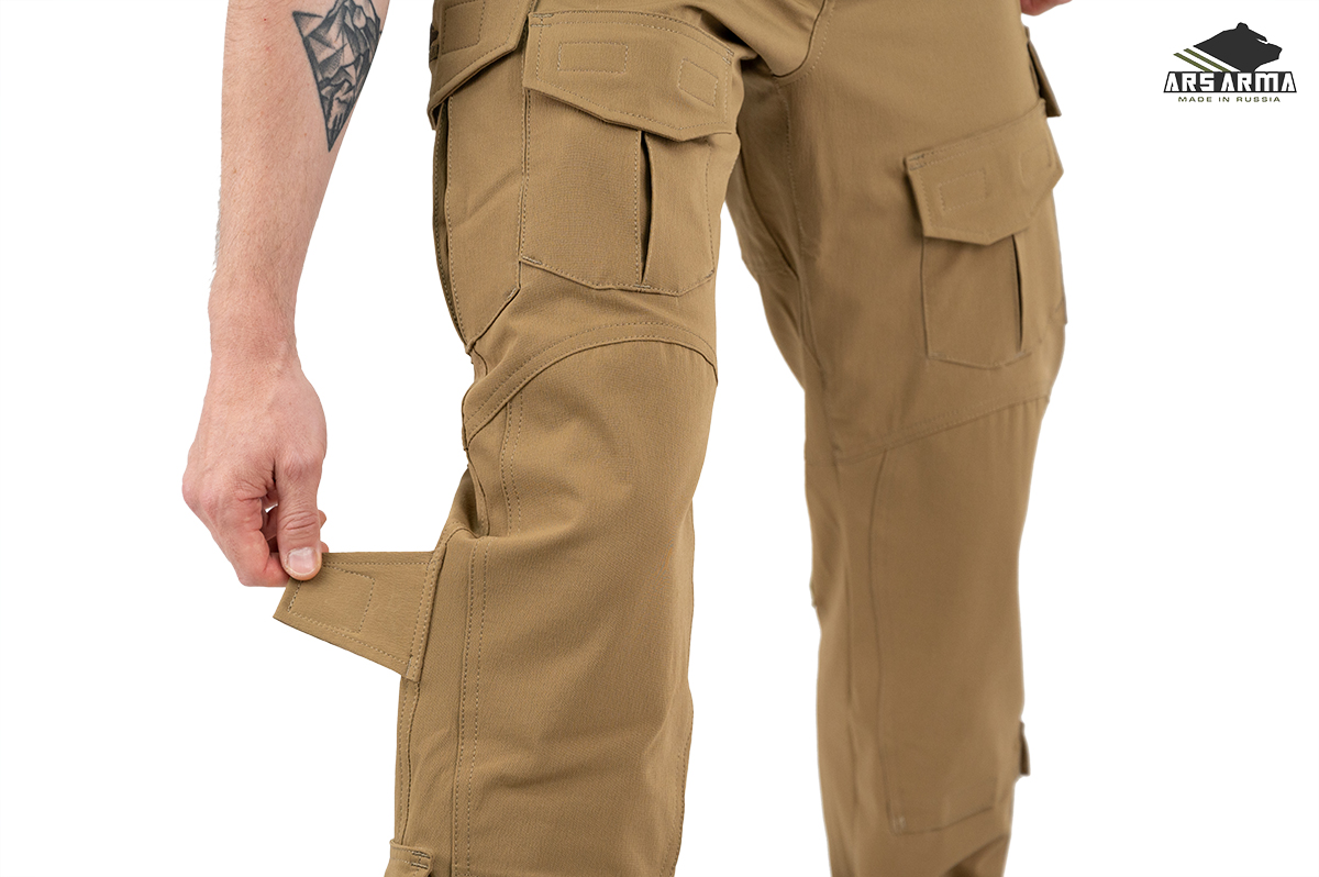Данная модель брюк сделана совместно с Александром Арутюновым aka Razvedosaaa. Её можно назвать тактической, сфера применения от повседневной носки, поездок на стрельбище, до боевого применения. Крой и применяемая ткань обеспечивают комфорт в любых условиях использования, ткань хорошо дышит, приятна телу, а крой не сковывает движения в самых активных ситуациях. Задние карманы имеют широкий удобный вход, карманы на голени и бедре запираются на клапан с липучкой, передние классические карманы с удобным доступом и большим размером. Колени усилены вторым слоем ткани, который образует карман для установки мягкого или классического наколенника от брюк Gen.3.
