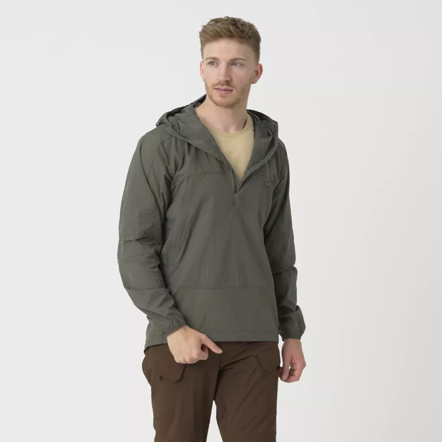 Конструкция с застежкой-молнией до середины груди позволила уменьшить количество швов и ненужных элементов, что позволило минимизировать вес куртки. Куртка хорошо подходит как самостоятельный слой в теплую погоду, так и в качестве ветрозащитного слоя, надеваемого поверх толстовки или легкого утеплителя весной, летом и ранней осенью.