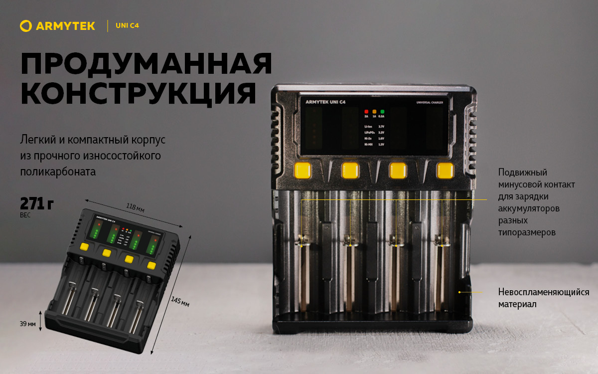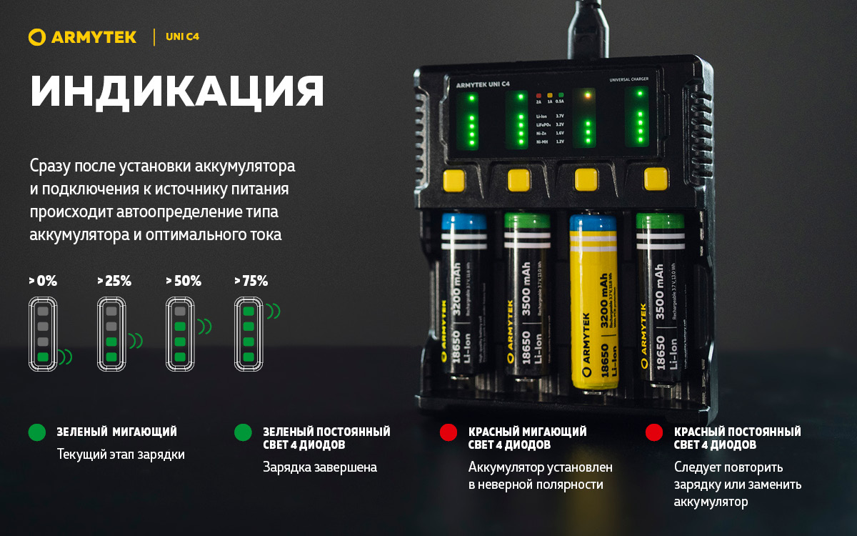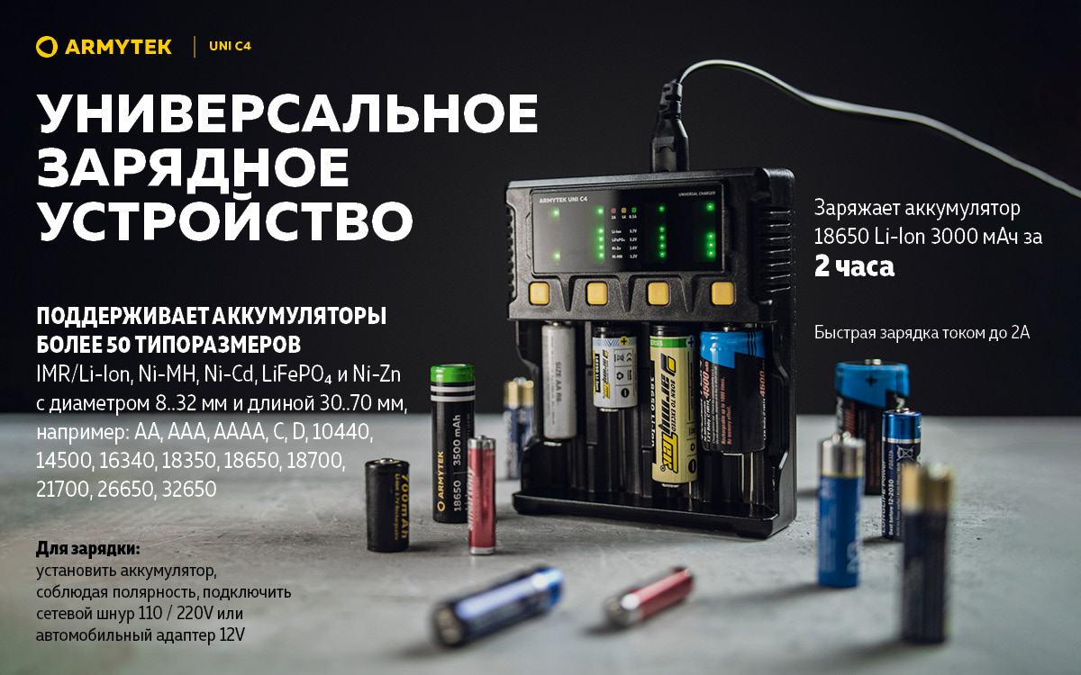 - Тип аккумуляторов: IMR/Li-Ion, Ni-MH, Ni-Cd, LiFePO4 и Ni-Zn